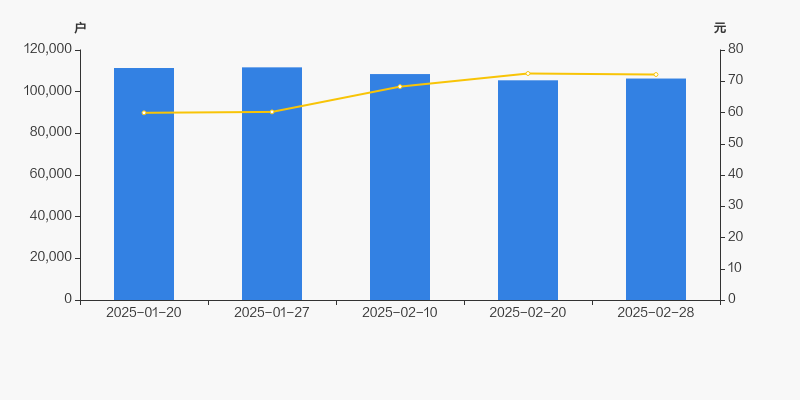 2025年1月20日至今,公司股东户数有所下降,区间跌幅为4.53%。2025年1月20日至2025年2月28日区间股价上涨20.45%。