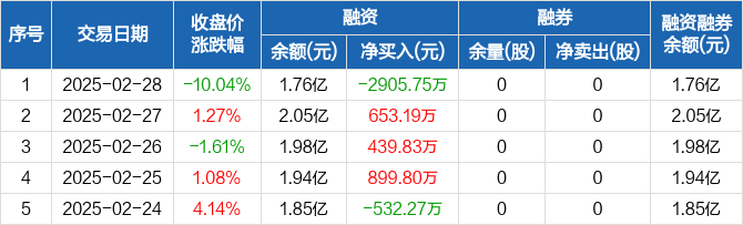春兴精工融资融券信息显示,2025年2月28日融资净偿还2905.75万元;融资余额1.76亿元,较前一日下降14.18%。