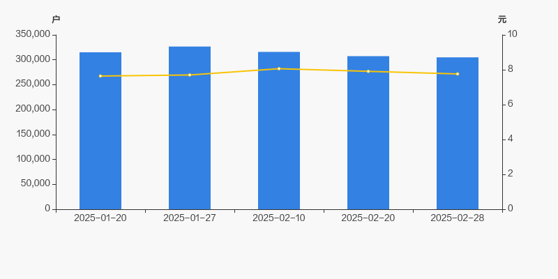 自2025年1月27日以来,公司股东户数连续3期下降,截至目前减幅为6.64%。2025年1月27日至2025年2月28日区间股价上涨0.78%。