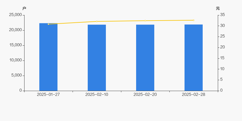 2025年1月27日至今,公司股东户数有所下降,区间跌幅为1.95%。2025年1月27日至2025年2月28日区间股价上涨5.91%。