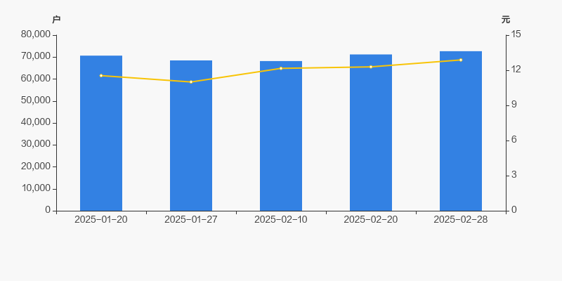 截至2025年2月28日,公司最新总股本为8.22亿股,其中流通股本为7.11亿股。户均持有流通股数量由上期的9990股下降至9788股,户均流通市值12.61万元。