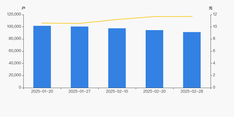 2025年1月20日至今,公司股东户数显著下降,区间跌幅为10.12%。2025年1月20日至2025年2月28日区间股价上涨10.17%。
