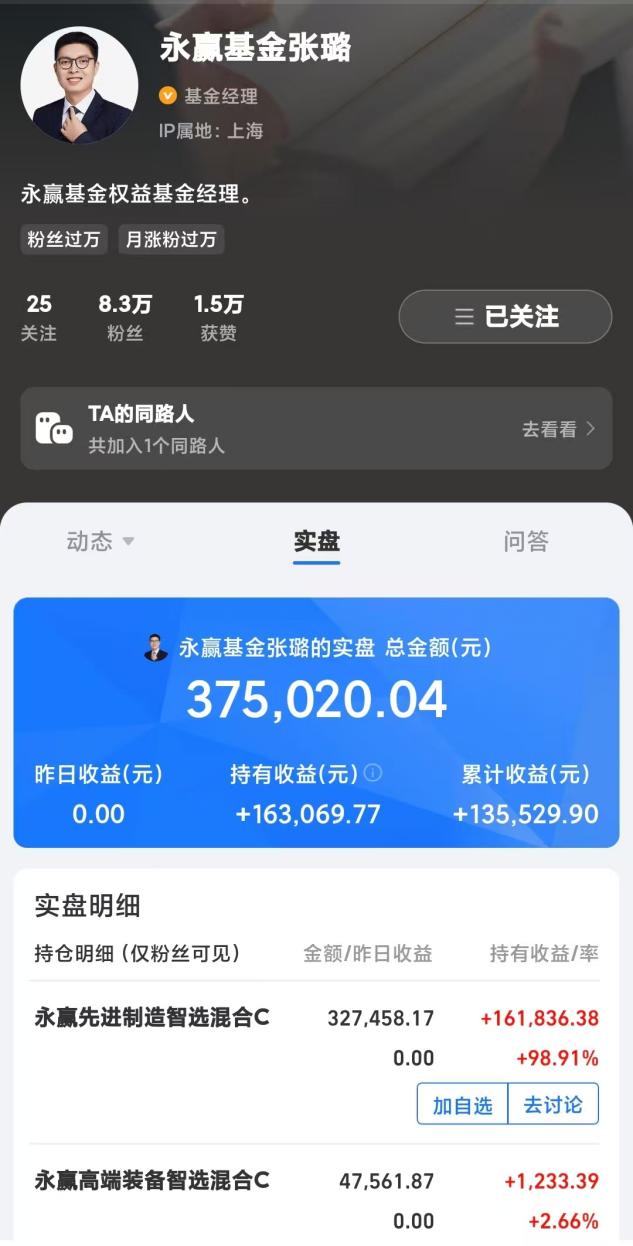 在业绩爆发期,张璐在支付宝平台公开个人实盘账户,实盘总金额超37万元,累计收益达13万元,引发市场对其“自购营销”策略的讨论。