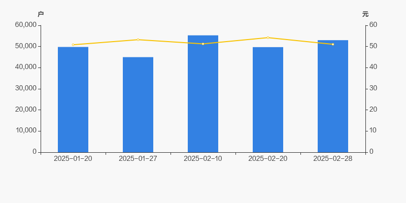 截至2025年2月28日,公司最新总股本为8.63亿股,其中流通股本为8.55亿股。户均持有流通股数量由上期的1.72万股下降至1.61万股,户均流通市值82.37万元。