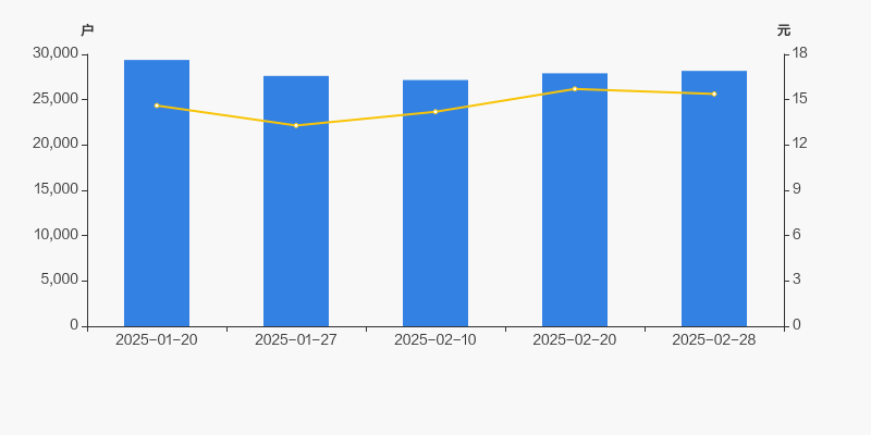 截至2025年2月28日,公司最新总股本为4.08亿股,其中流通股本为2.94亿股。户均持有流通股数量由上期的1.05万股下降至1.04万股,户均流通市值16.05万元。