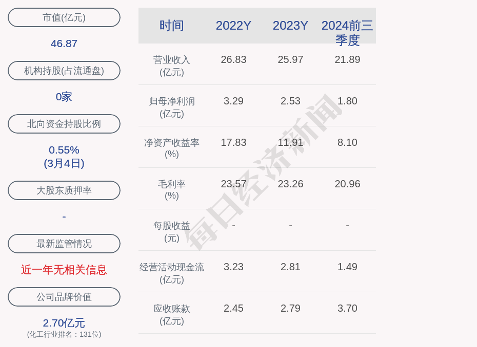 2023年年报显示,新化股份的主营业务为化工行业、其他行业,占营收比例分别为:98.84%、0.03%。