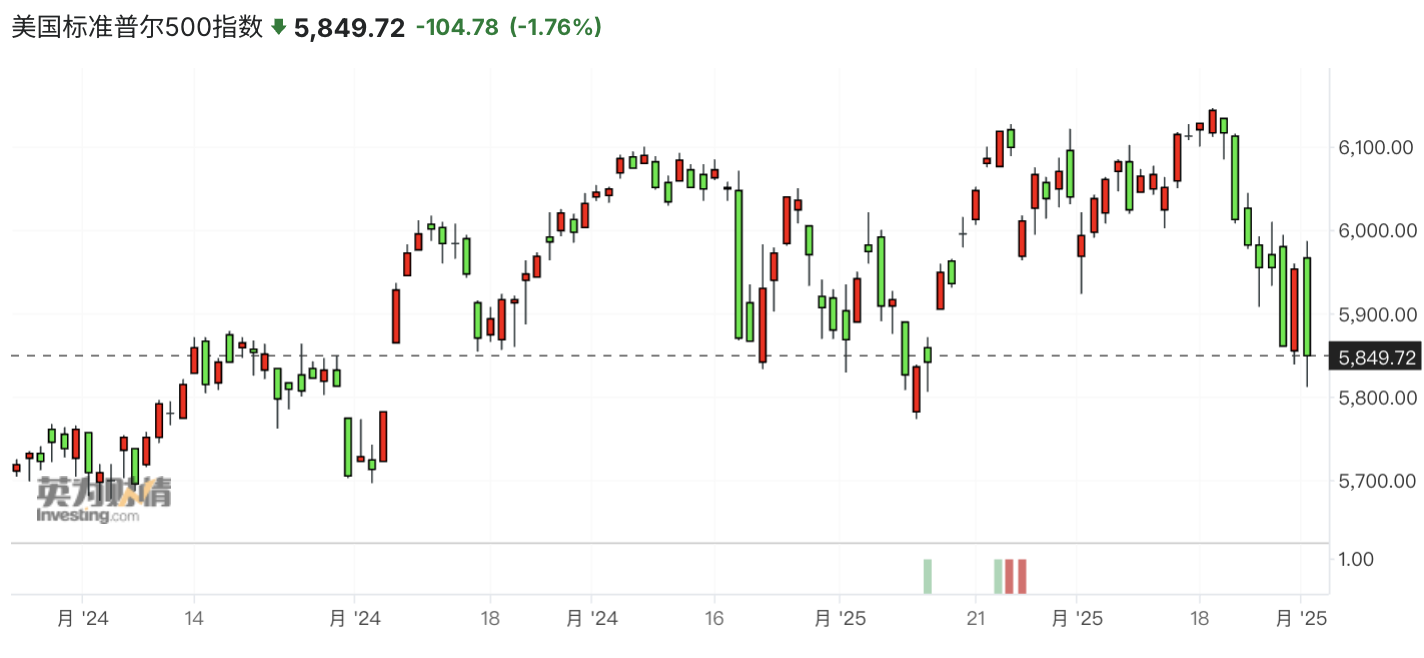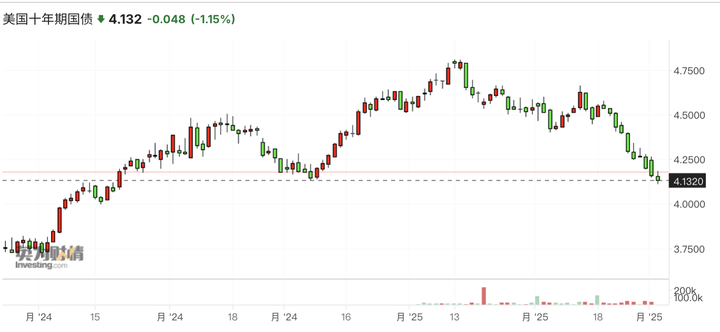 随着偏弱的经济数据出炉,叠加关税冲击和俄乌局势,“美国例外论”(US Exceptionalism)持续受到质疑,10年美债收益率暴跌至4%附近,美股经历了近3年来最快的一次5%回调。暴跌出现在短短一周内,但跌势并未刹车。