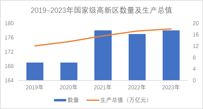 近年来,随着全球经济形势的变化和国内政策的推动,产业园区建设行业持续扩张。截至2023年底,共有国家级经开区229个,高新区178个;省级产业园由省、自治区、直辖市政府批准设立,目前数量有近2200个;此外,我国市县政府还管辖了约7万个基层的产业园,这些园区一般包括工业园区、物流园区、农业园区等。2023年,国家级经开区、高新区的生产总值合计超过32.8万亿元,约占我国GDP的25.5%,虽然较去年占比稍有下降,但仍对我国经济发展作出了重要贡献。