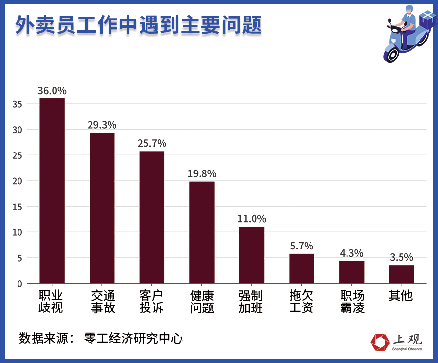 但除此之外,骑手们还想要什么?零工经济研究中心在调研中发现了八大主要问题: