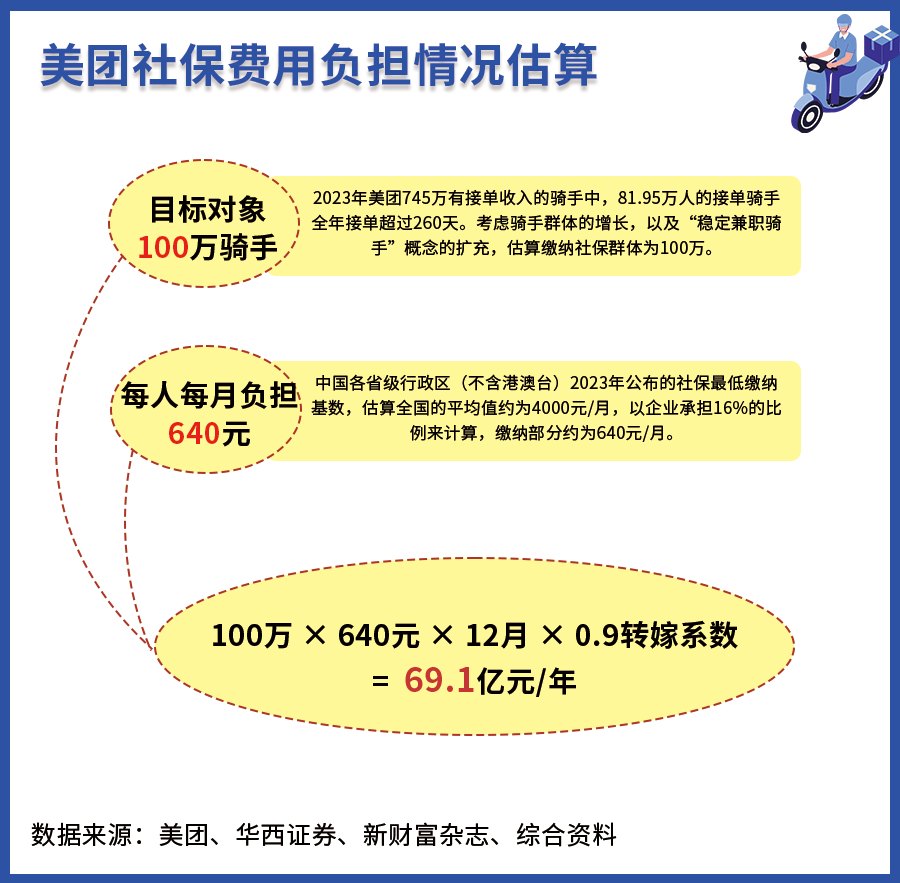 明确了骑手数量,我们以美团为例,估算平台缴纳社保需要负担的费用。