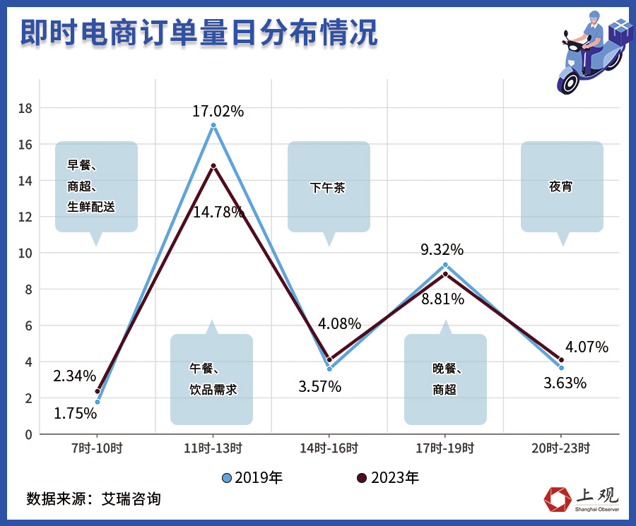 根据艾瑞咨询的数据,过去外卖骑手一天只忙两个高峰期,现在则逐渐变成了多个高峰期,全天候待机送单的需求加强。尽管有效时长不在疲劳范围内,但送单压力确实加重了,这是目前的防疲劳机制没有解决的问题。