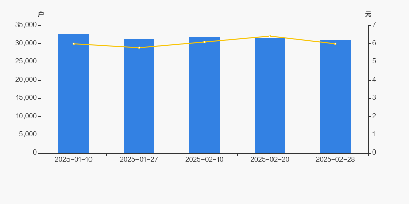 截至2025年2月28日,公司最新总股本为6.47亿股,其中流通股本为6.35亿股。户均持有流通股数量由上期的2.01万股上升至2.04万股,户均流通市值12.24万元。