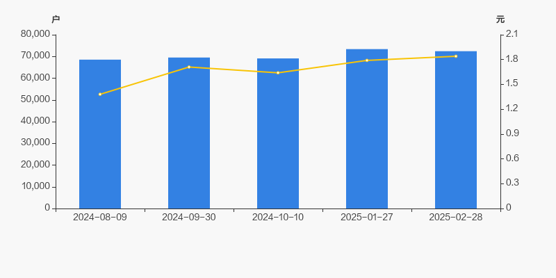 截至2025年2月28日,公司最新总股本为17.23亿股,其中流通股本为13.96亿股。户均持有流通股数量由上期的1.9万股上升至1.93万股,户均流通市值3.55万元。