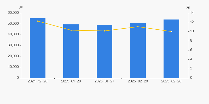 截至2025年2月28日,公司最新总股本为9.47亿股,其中流通股本为8.96亿股。户均持有流通股数量由上期的1.76万股下降至1.66万股,户均流通市值16.61万元。