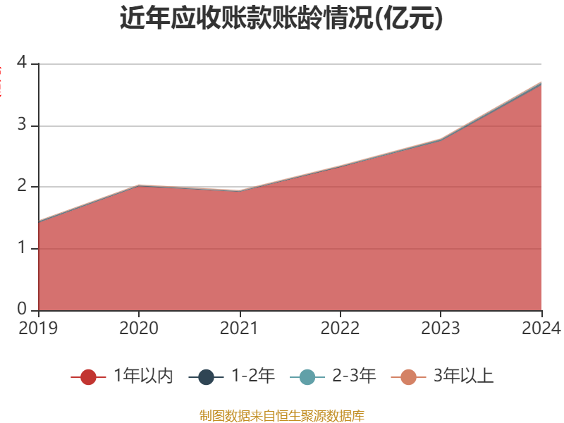 从应收账款账龄结构来看,截至2024年末,公司账龄在1年以内的应收账款余额为3.65亿元,较上年末增长9084.13万元,占应收账款总额比例为98.31%,较上年末下降0.11个百分点。