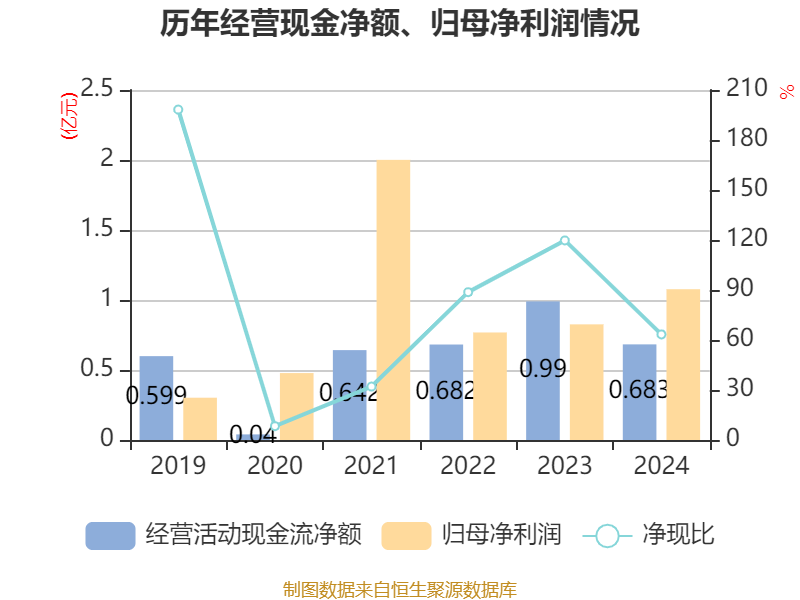 截至2024年,公司经营活动现金流净额为6826.41万元,同比下降31.01%;筹资活动现金流净额-99.62万元,同比减少3100.96万元;投资活动现金流净额-1709.48万元,上年同期为-1.26亿元。