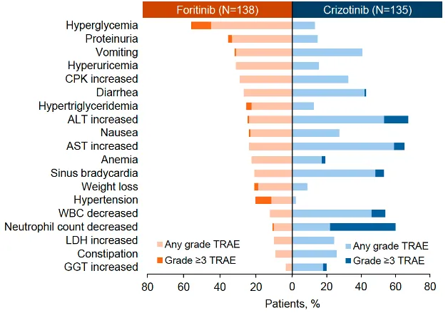安全性方面,复瑞替尼3/4级治疗相关不良事件(TRAEs)发生率为37.7%,低于克唑替尼组的55.6%,且未报告间质性肺病或致死性事件。目前该药累计研发投入约4.39亿元(截至2025年1月)。