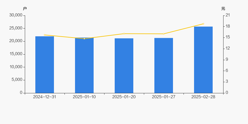 2024年12月31日至今,公司股东户数显著增长,区间涨幅为17.15%。2024年12月31日至2025年2月28日区间股价上涨19.20%。
