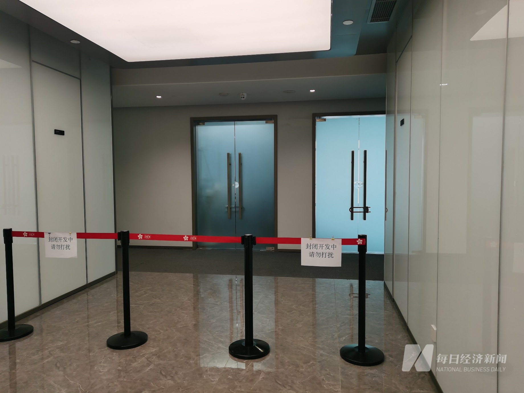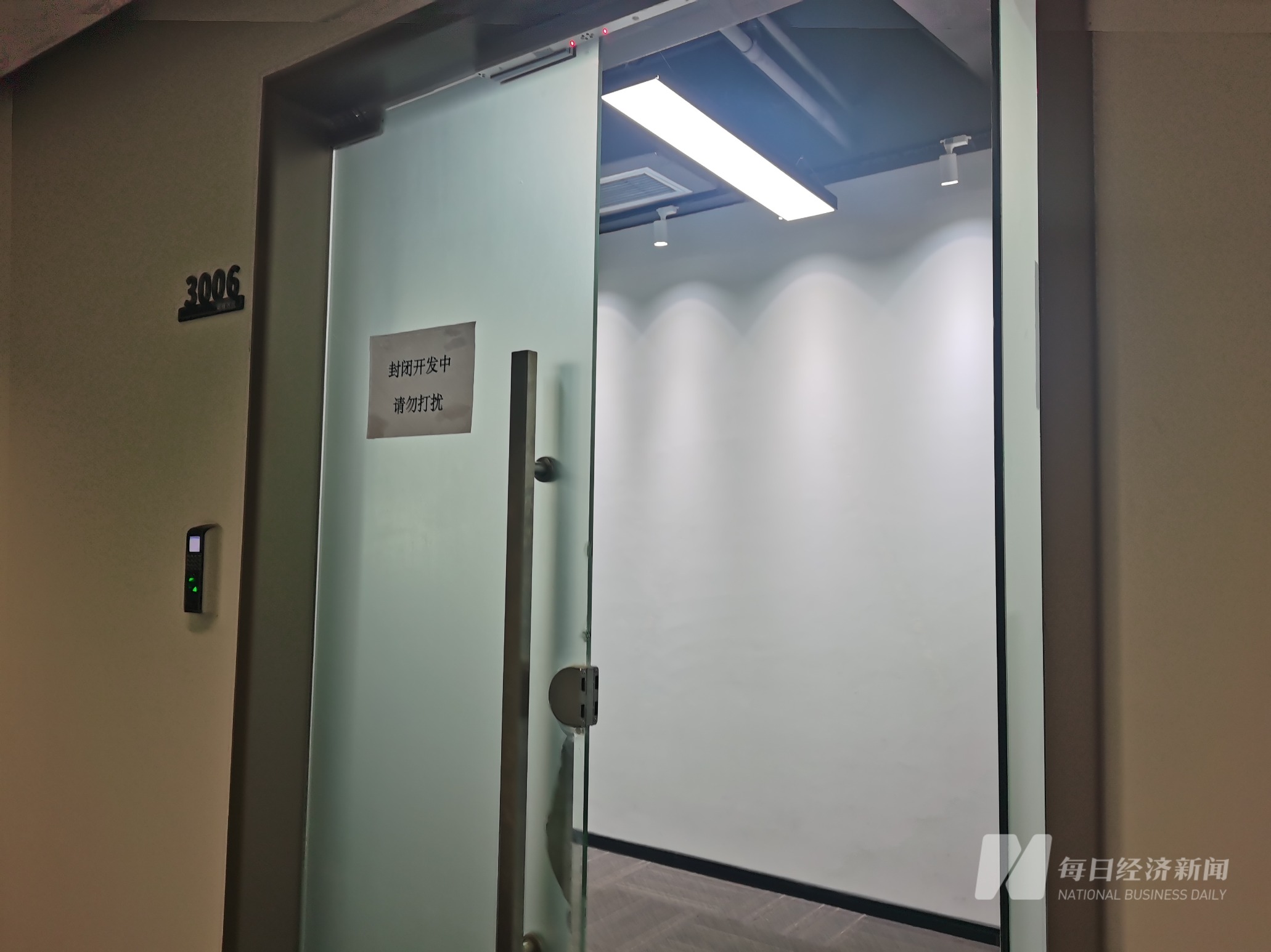 3月7日早上九点多,穿越一楼的门禁,《每日经济新闻》记者来到公司位于30楼的办公室门口看到,公司办公室入口通道已被阻拦,办公室门口都贴上了“封闭开发中,请勿打扰”的字条。