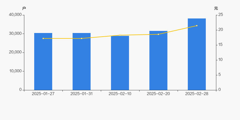 2025年1月27日至今,公司股东户数显著增长,区间涨幅为25.51%。2025年1月27日至2025年2月28日区间股价上涨24.78%。