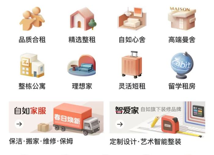 2023年,自如通过收购豪宅品牌“曼舍”和推出家装APP“智爱家”,进一步向产业链下游延伸,形成“租赁+装修+服务”的闭环生态。