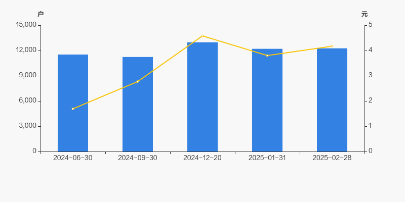 截至2025年2月28日,公司最新流通股本为4.32亿股。户均持有流通股数量由上期的3.54万股下降至3.52万股,户均流通市值14.69万元。