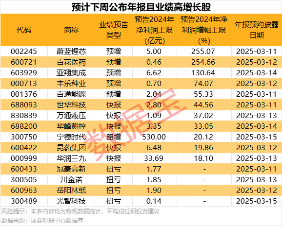 统计显示,业绩预增和扭亏股中,9股预计净利润同比最大增幅超50%,冠豪高新、川金诺、蔚蓝锂芯、百花医药等预计净利润增幅居前。