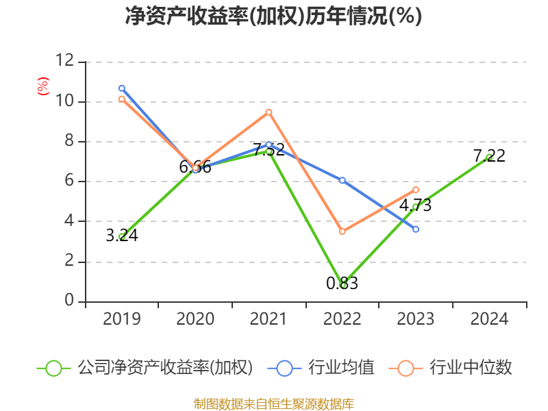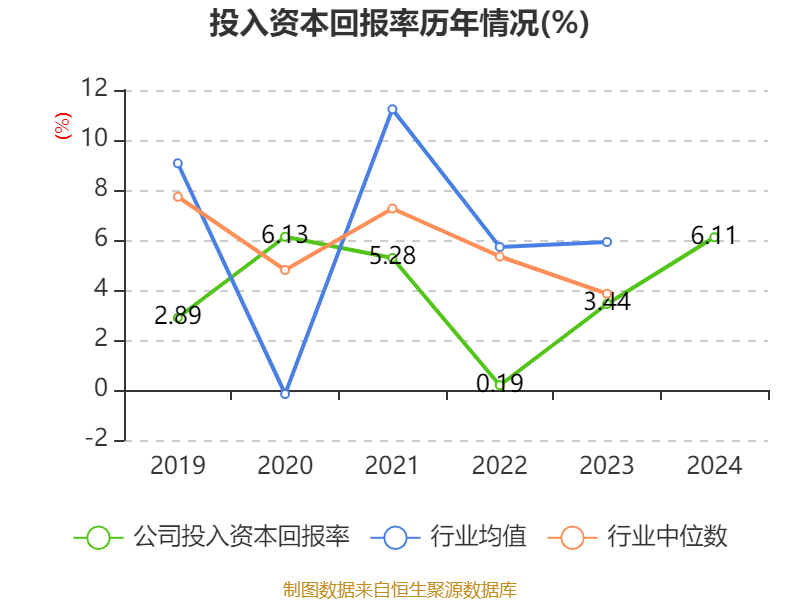 数据显示,2024年公司加权平均净资产收益率为7.22%,较上年同期上升2.49个百分点。公司2024年投入资本回报率为6.11%,较上年同期上升2.67个百分点。
