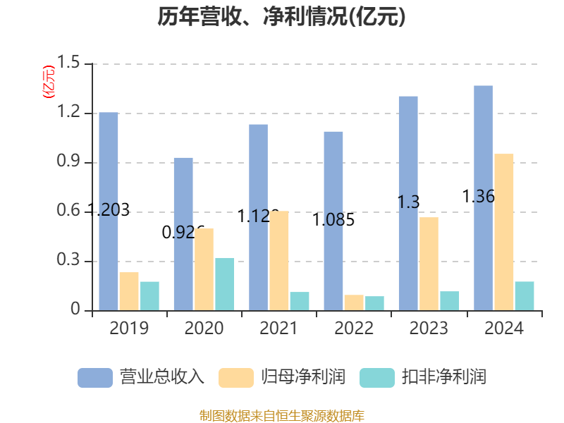 中证智能财讯汇通能源(600605)3月8日披露2024年年度报告。2024年,公司实现营业总收入1.37亿元,同比增长5.03%;归母净利润9510.26万元,同比增长68.46%;扣非净利润1735.35万元,同比增长50.74%;经营活动产生的现金流量净额为7243.13万元,同比下降75.05%;报告期内,汇通能源基本每股收益为0.461元,加权平均净资产收益率为7.22%。公司2024年度分配预案为:拟向全体股东每10股派现1.4元(含税)。