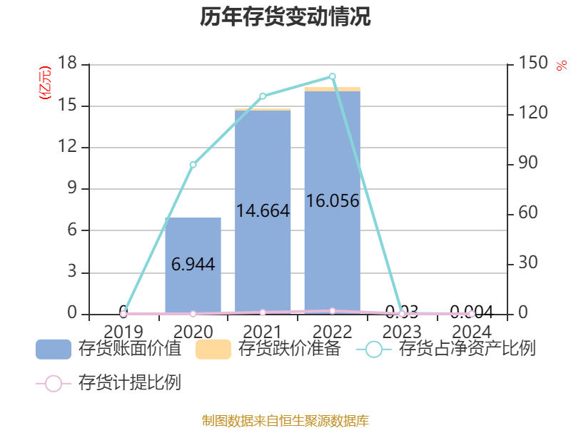 从存货变动来看,截至2024年末,公司存货账面价值为39.19万元,占净资产的0.03%,较上年末减少259.22万元。公司本期没有计提存货跌价准备。