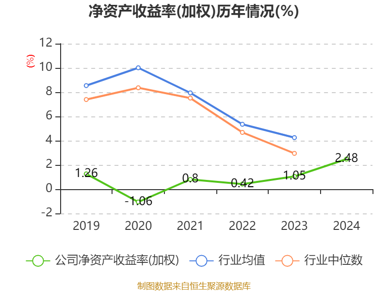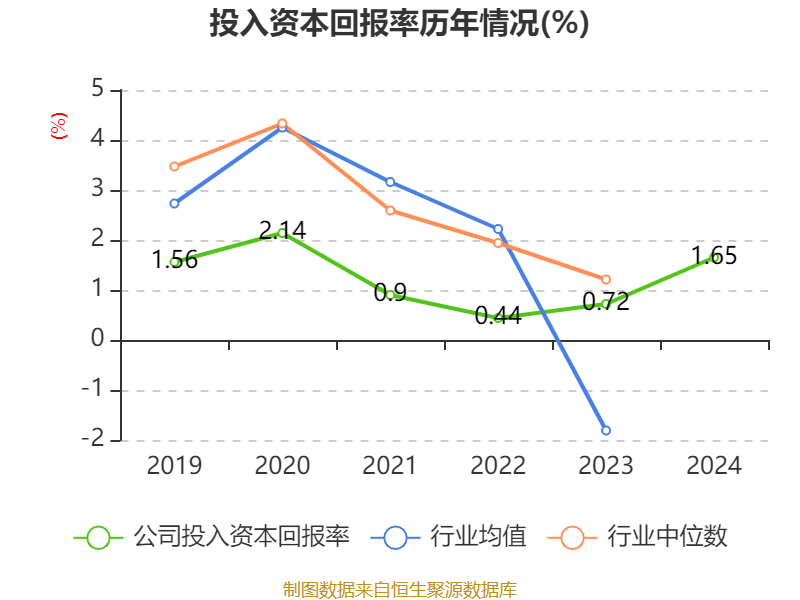 数据显示,2024年公司加权平均净资产收益率为2.48%,较上年同期上升1.43个百分点。公司2024年投入资本回报率为1.65%,较上年同期上升0.93个百分点。