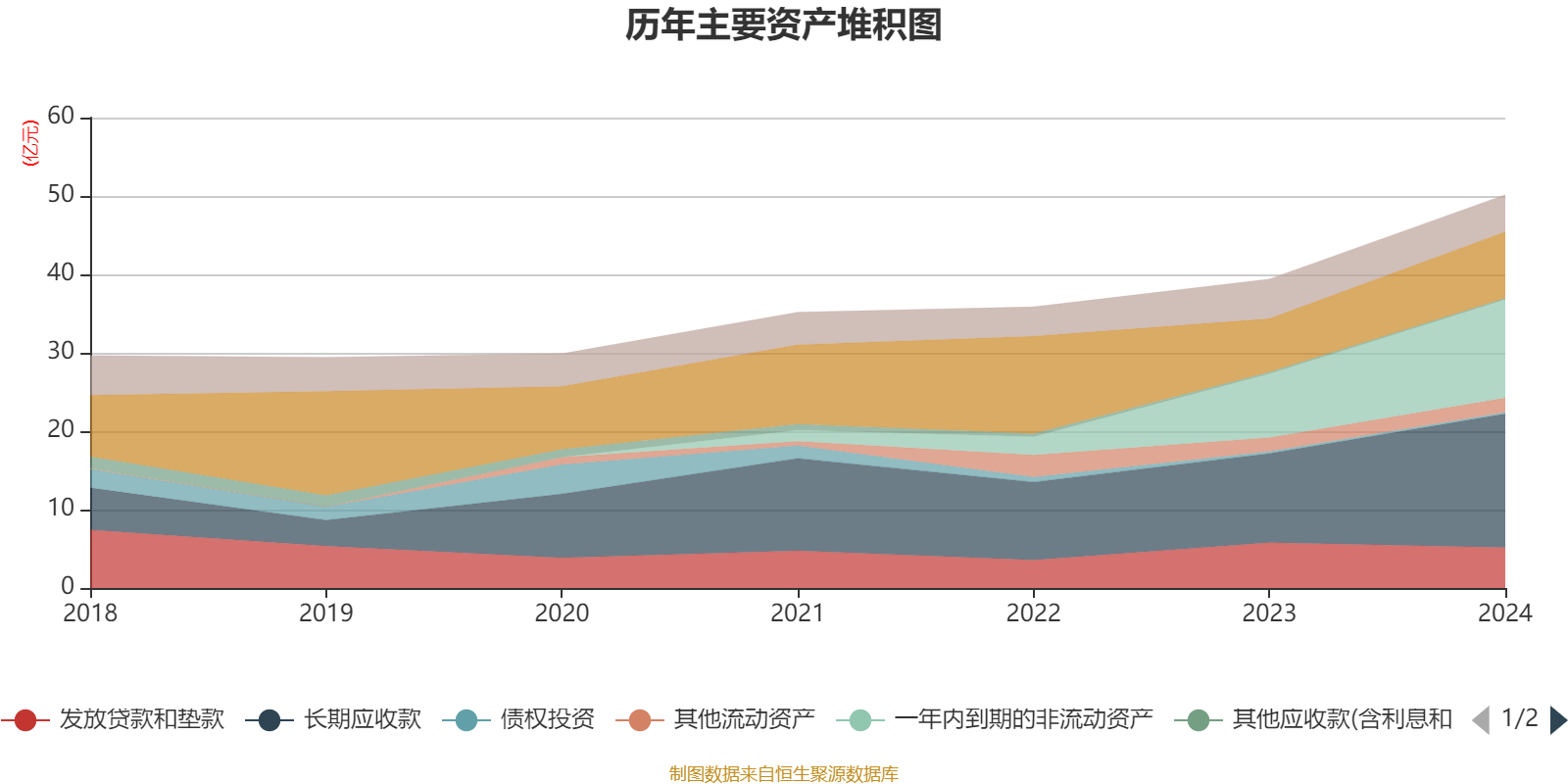 资产重大变化方面,截至2024年末,公司长期应收款较上年末增加49.7%,占公司总资产比重上升5.09个百分点;发放贷款和垫款较上年末减少10.78%,占公司总资产比重下降4.38个百分点;一年内到期的非流动资产较上年末增加54.02%,占公司总资产比重上升4.34个百分点;固定资产较上年末减少93.63%,占公司总资产比重下降1.23个百分点。