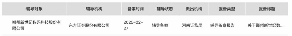 近日,郑州新世纪数码科技股份有限公司(简称“世纪数码”)披露北交所IPO辅导备案报告,辅导机构为东方证券股份有限公司。