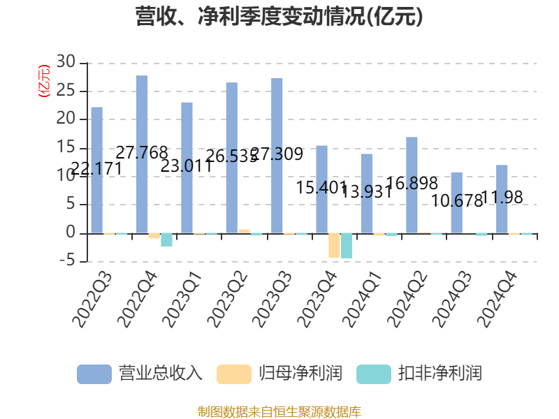 从存货变动来看,截至2024年末,公司存货账面价值为4.74亿元,占净资产的9.78%,较上年末减少6.79亿元。其中,存货跌价准备为6946.26万元,计提比例为12.77%。