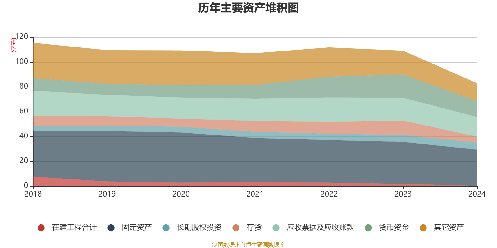 资产重大变化方面,截至2024年末,公司存货较上年末减少58.87%,占公司总资产比重下降4.85个百分点;固定资产较上年末减少13.77%,占公司总资产比重上升4.2个百分点;应收票据及应收账款较上年末减少13.82%,占公司总资产比重上升2.28个百分点;长期股权投资较上年末增加3.89%,占公司总资产比重上升1.88个百分点。