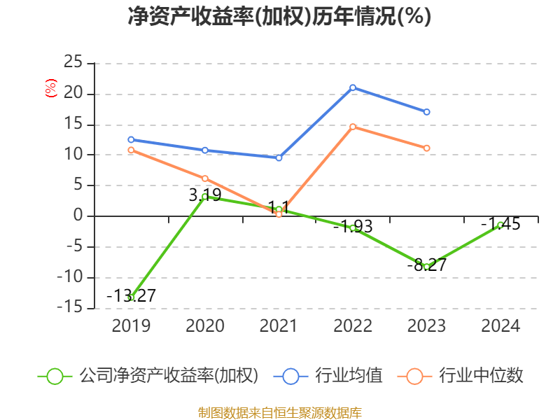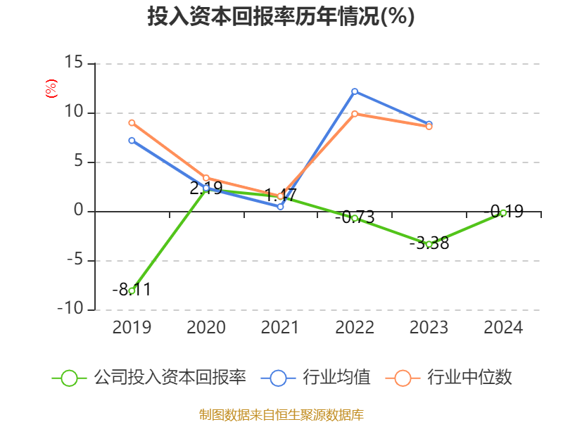 数据显示,2024年公司加权平均净资产收益率为-1.45%,较上年同期上升6.82个百分点。公司2024年投入资本回报率为-0.19%,较上年同期上升3.19个百分点。