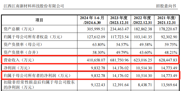 招股书意向书显示,2024年AI算力基础设施及终端设备和汽车电子等市场持续向好,拉动PCB(印制电路板)市场需求增加,从而带动江南新材产销量增长。