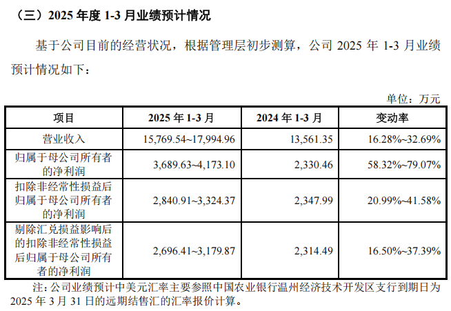 浙江华远管理层预测,公司2025年第一季度的营业收入为1.58亿元至1.80亿元,同比增长16.28%至32.69%;归母净利润为3689.63万元至4173.10万元,同比增长58.32%至79.07%。