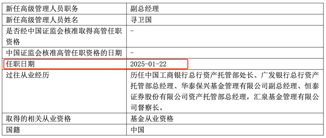 事实上,寻卫国是在今年1月22日出任汇泉基金副总经理一职的,此次离任距离他上任不到2个月时间。