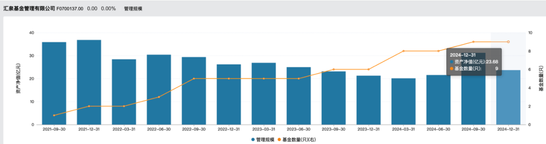 汇泉基金是一家个人系公募基金公司,于2020年6月注册成立于北京市通州区,注册资本为1亿元人民币。截至2024年四季度末,汇泉基金的公募基金管理规模为23.68亿元。