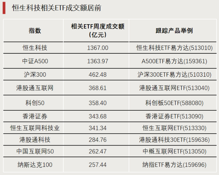 从成交额方面看,恒生科技指数相关ETF的周度成交额名列前茅,Wind数据显示,其上周的成交额突破1360亿元。此外,A500ETF成交近期持续保持活跃,本周A500ETF易方达(159361)的周度成交额也居于单个产品前十。