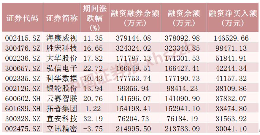 上周,计算机行业融资余额增加超40亿元;A股市场融资净买入金额最大的股票为海康威视,净卖出金额最大的股票为中国联通。