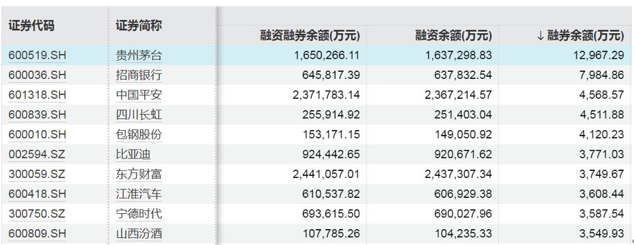 截至3月7日,A股市场融券余额居前的股票分别为贵州茅台、招商银行、中国平安,融券余额分别为1.3亿元、0.8亿元、0.46亿元。