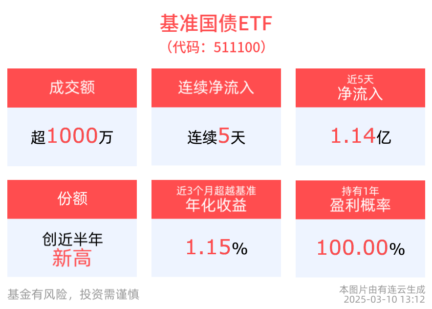 基准国债ETF(511100)连续5天净流入,合计“吸金”1.14亿元