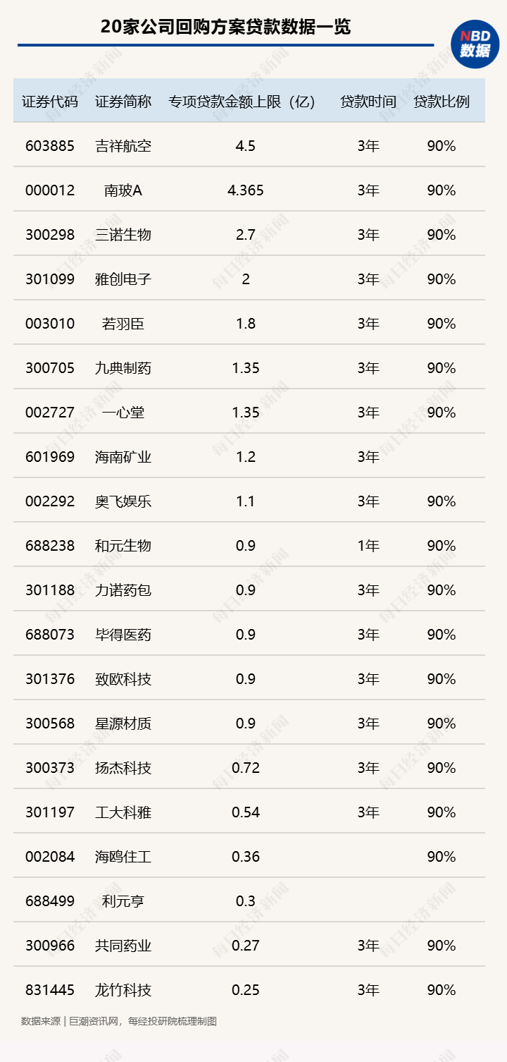 具体个股上,拟回购金额上限居前的公司有能特科技、吉祥航空、南玻A、三诺生物、海南华铁,拟回购金额上限分别为:5亿、5亿、4.85亿、3亿和3亿。其中,能特科技拟回购股份数量上限在公司总股本中的占比也最高,为4.87%,本次回购用途为注销减资。