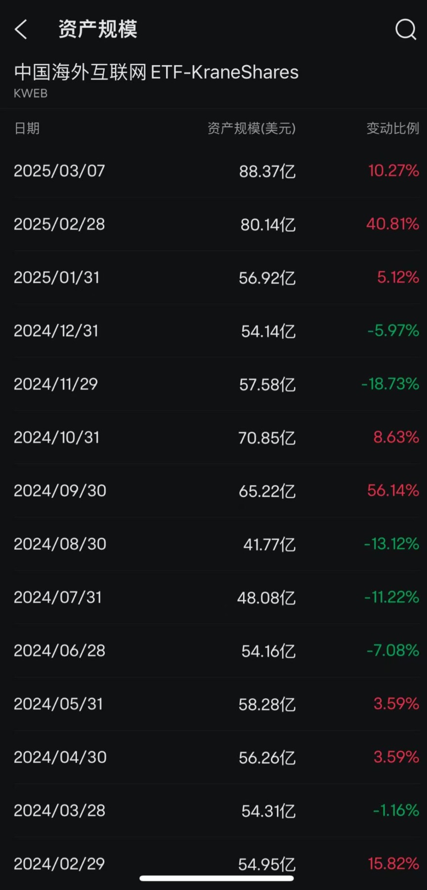 截至3月7日,MSCI中国ETF-iShares资产规模为64.08亿美元,相较于2月底的59.05亿美元增长8.52%;3倍做多富时中国ETF-Direxion资产规模为19.1亿美元,相较于2月底的17.91亿美元增长6.64%;中国大盘股ETF-iShares资产规模为80.8亿美元,相较于2月底的77.1亿美元增长4.8%。