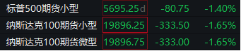 道指期货跌1.11%,标普500指数期货跌1.4%,纳指期货跌1.65%。