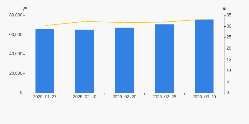 自2025年2月10日以来,公司股东户数连续3期上涨,截至目前增幅为16.13%。2025年2月10日至2025年3月10日区间股价上涨3.13%。