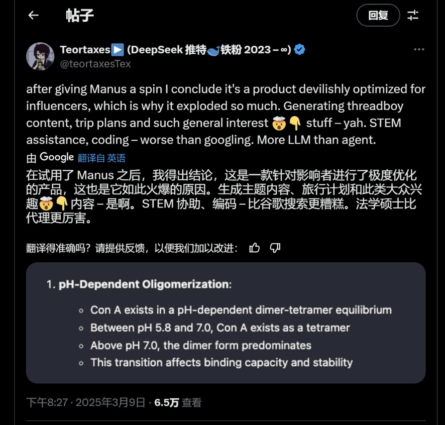 除此之外,有用户还指出,Manus容易出现幻觉问题,它更适合做内容输出,而不是编码或是科学研究。