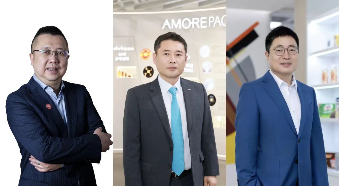 新西兰纽仕兰乳业亚太区CEO盛文灏(左)、爱茉莉太平洋中国总裁朴泰镐(中)、雀巢大中华区董事长兼首席执行官张西强(右)